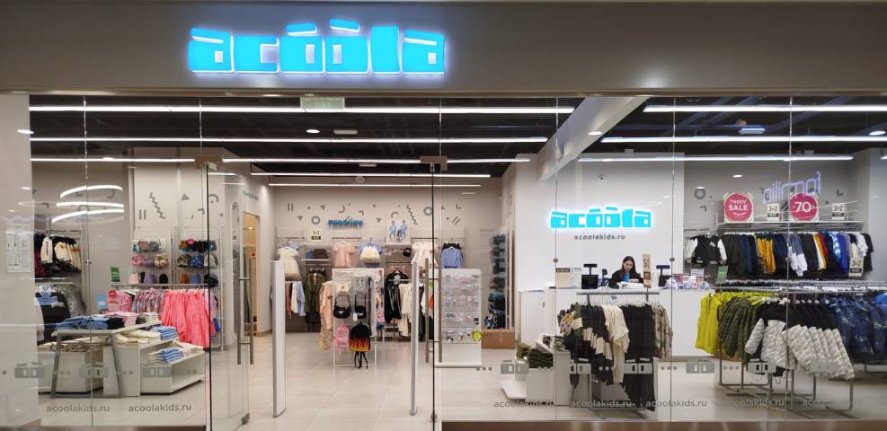 Магазин Acoola площадью 166 кв. м распахнул свои двери на 2 этаже торгово-развлекательного центра «Южный», напротив детского развлекательного центра «Остров Сокровищ».