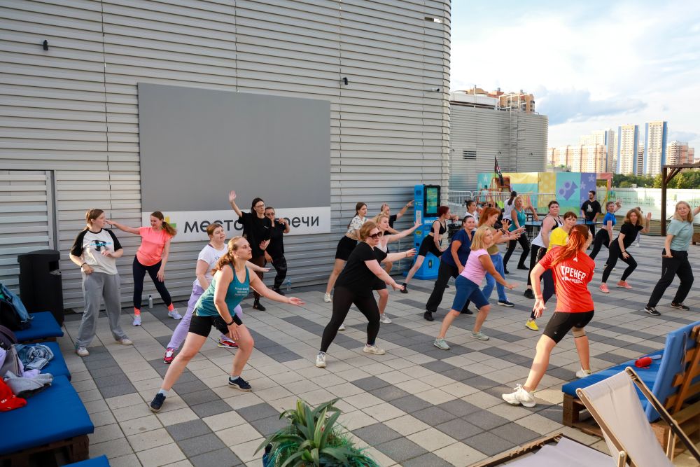 Сеть «Место встречи» открыла сезон спортивных тренировок под открытым небом на эксплуатируемых кровлях 12 районных центров. Москвичи могут прийти на бесплатные тренировки зумбой, йогой, танцевальным фитнесом и растяжкой. Все тренировки пройдут в рамках спецпроекта «На высоте» вместе программой городских тренировок «Мой спортивный район».