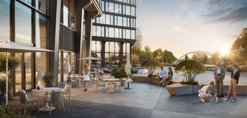 Всего в линейке предложений представлены 33 лота — классический street-retail от 36 кв. м на первых этажах с потолками до 4,7 м, клиентские офисы от 40 кв. м со свободным доступом из лобби и площади под кафе. В общественном пространстве бизнес-центра также реализуются ресторан площадью 216 кв. м с собственным выходом на набережную и ресторан площадью 284 кв. м рядом с лобби с возможностью реализации летней веранды под архитектурной аркой башни.