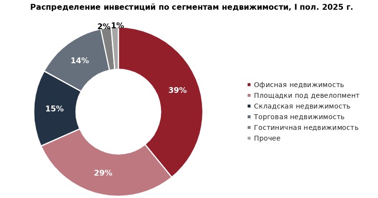 Кроме того, по нашим данным, игроки из сектора «Банки/ финансы/инвестиции» в 2024 – I полугодии 2025 года активно инвестировали в офисную недвижимость, их доля в общем объеме сделок составила около 12%.