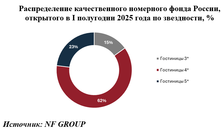 С 2022 года фиксируется ежегодный рост числа туристских поездок по России. Высокий спрос на размещение в гостиницах страны стимулирует рост объемов нового строительства в различных регионах страны. Так, уже в первые пять месяцев 2025 года объем предложения в классических гостиницах вырос на 1,6 тыс. номеров, что на 20% больше, чем за аналогичный период прошлого года. Крупнейшие из них – новый корпус Альфа отеля Fioleto Ultra All Inclusive & SPA Anapa Miracleon 4* в Краснодарском крае (400 номеров), Alean Club Sophiа от гостиничного оператора Alean в Карачаево-Черкессии (225 номеров). На этапе строительства находятся еще 8,5 тыс. номеров, запланированных к вводу в этом году. В случае реализации всех запланированных объектов, объем нового строительства в 2025 году составит 10 тыс. номеров и станет рекордным с 2014 года, когда открылся 61 объект совокупным номерным фондом 11,2 тыс. номеров.