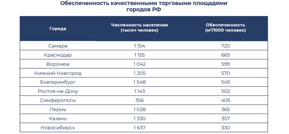 Другое дело, что города вроде Екатеринбурга, Самары, Краснодара в итоге стали лидерами по обеспеченности торговыми площадями (877 м² на 1000 жителей в Екатеринбурге) , а вот отстающие миллионники (Пермь – 304 м²/1000, Волгоград – 303 м²/ 1000) – остались с дефицитом, уточняет Станислав Ахмедзянов. В средних городах рынок также начал замедляться – самые «вкусные» площадки уже ведь были освоены.